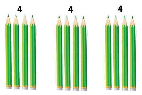 Было 12 карандашей. Нужно выдать по 4 карандаша, скольки ученикам достанутся карандаши.
